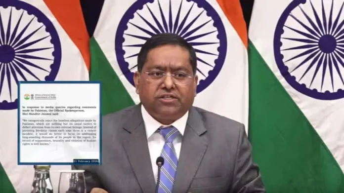 विदेश मंत्रालय के प्रवक्ता रणधीर जायसवाल ने रविवार को कहा कि पाकिस्तान के आरोप पूरी तरह निराधार हैं। उन्होंने कहा, “हर हिंसक घटना के बाद बेबुनियाद आरोप लगाने के बजाय पाकिस्तान को बलूचिस्तान के लोगों की वास्तविक मांगों और चिंताओं पर ध्यान देना चाहिए।”
