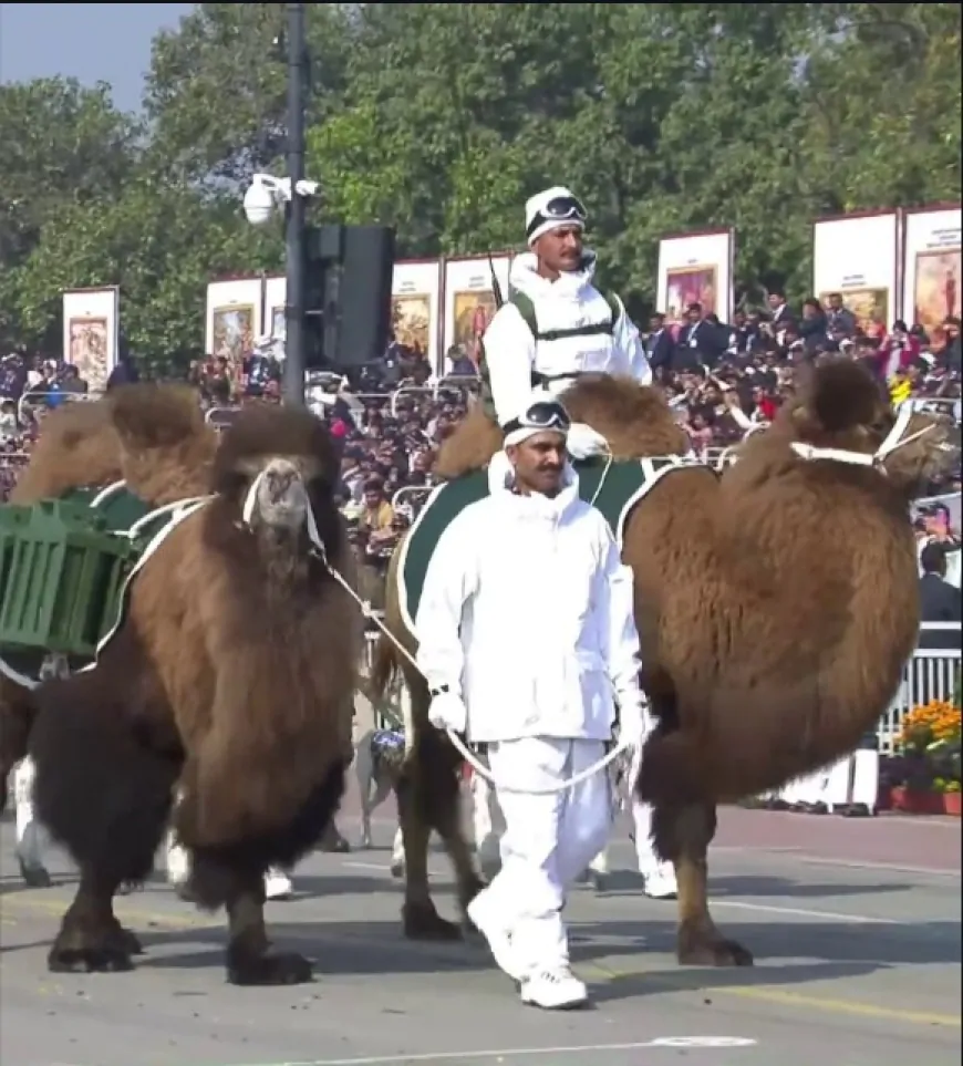 परेड में पहली बार लद्दाख क्षेत्र के दो कूबड़ वाले बैक्ट्रियन ऊंटों ने भी हिस्सा लिया। ये ऊंट -40 डिग्री तापमान और 17 हजार फीट की ऊंचाई पर काम करने में सक्षम होते हैं। ये ऊंट ‘कोल्ड डेजर्ट वॉरियर’ के रूप में जाने जाते हैं। इसके अलावा दुर्गम इलाकों में सेना तक रसद और हथियार पहुंचाने में अहम भूमिका निभाते हैं।