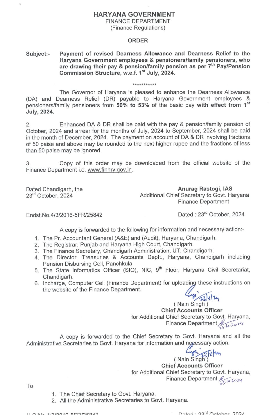 अनुराग रस्तोगी ने अपने आदेश में कहा कि सरकारी कर्मचारियों के साथ-साथ पेंशन भोगियों को भी इससे राहत मिलेगी बता दें कि इसका भुगतान आगामी वेतन और पेंशन के साथ किया जाएगा।